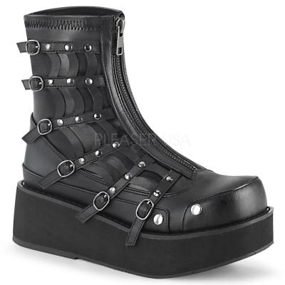 2 1/4"(57 mm) プラットフォーム Zip フロント足首ブート調節可能なスパイク クモの巣の切り欠きデザイン(PF Zip Front Ankle Boot)