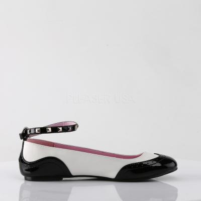 スタッズ付きアンクルス トラップとバックル ディテールでフラット ラウンドトゥ サドル(*Round Toe Saddle Flat w/Studded Ankle Strap &Buckle Detail)
