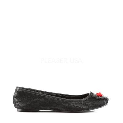 レース オーバーレイ メアリー ジェーン フラット特徴フリル レース トリムと心パッチ刺繍スケルトン胸部と赤ローズの詳細(**Mary Jane Lace Flat w/Heart Patch &Skeleton Ribcage Design)