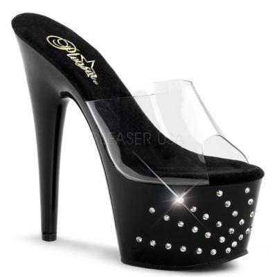 7 インチ (17.8 cm) ヒール, 2 3/4 インチ (7 cm) プラットフォーム プラットフォームの特徴ラインス トーン バーストをスライドします。(PF Rhinestone Starburst Platform Slide)