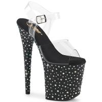 8インチ(200mm)ヒール、4インチ(100mm)プラットフォームアンクルストラップサンダル、底にマルチサイズのラインストーンがちりばめられています(PF Ankle Strap Sandal)