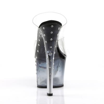 7 インチ (17.8 cm) ヒール、2 3/4 インチ (7 cm) 2 つバンド スライド彩色かかとと染められたプラットフォームの外側のちりばめられた全室マルチ サイズ ラインス トーン