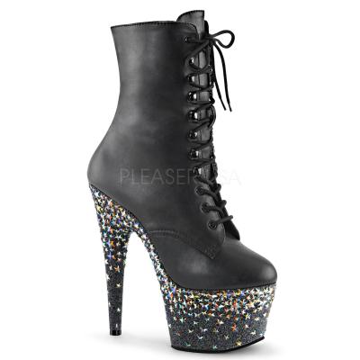 7 インチ (17.8 cm) ヒール、2 3/4 インチ (7 cm) プラットフォーム フロント編み上げ足首ブート全室 Slv ホログラム星プラットフォーム、ジッパー閉鎖中(PF Lace-Up Ankle Boot w/Stars, Side Zip)