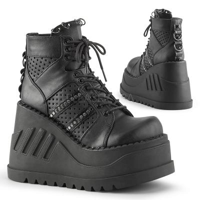 ◆ 4 3/4"(12.1 cm) 格子切り欠き舌・背中に O リングの特徴を持つプラットフォーム レースアップ フロント ウェッジ ブーティー ◆