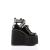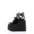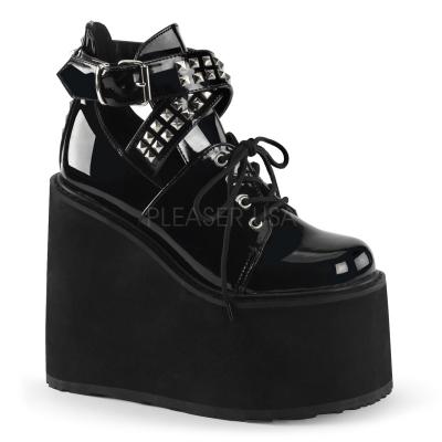 5 1/2 インチ (14 cm) ウェッジ プラットフォーム 3 アイレット半編み上げフロント足首ブーティー特徴側カットアウト デザインと包み込むピラミッド スタッズ ディテール バックルス トラップ