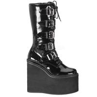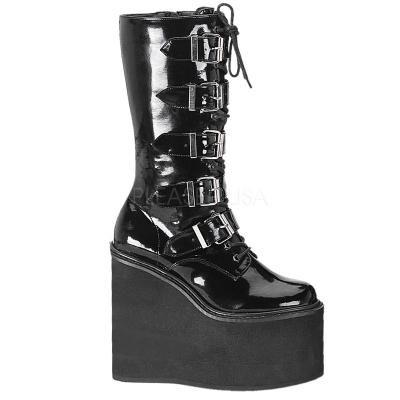 5 1/2 インチ (14 cm) プラットフォーム ・ サイバー パンク 5 バックル プラットフォームふくらはぎブート、完全内側ジッパーのくさび(Goth Punk Cyber 5 Buckle PF Calf BT)