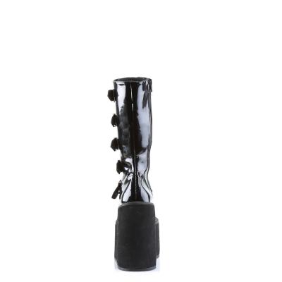 5 1/2 インチ (14 cm) プラットフォーム ・ サイバー パンク 5 バックル プラットフォームふくらはぎブート、完全内側ジッパーのくさび(Goth Punk Cyber 5 Buckle PF Calf BT)