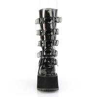 5 1/2"(140mm)プラットフォームミッドカーフブーツは、ハート型の金属プレートを中心に5バックルストラップを備え、バックメタルジップクロージャー(PF Mid-Calf Boot w/5 Buckle Straps, Back Metal Zip)
