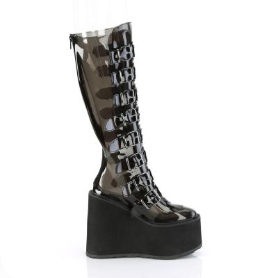 5 1/2""(140mm)プラットフォーム膝ハイブーツは、中心に8バックルストラップを備えた/ 金属プレート、バックメタルジップクロージャー(PF Knee High Boot w/ 8 Buckle Straps, Back Metal Zip)