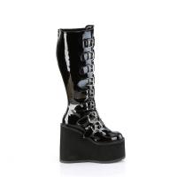 ◆ 5 1/2""(140mm)プラットフォームワイドカーフ膝ハイブーツは、中心に8バックルストラップ付き/ 金属プレート、バックメタルジップクロージャー ◆