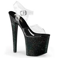 7 1/2"(19.1 cm) ヒール、3 1/2 インチ (8.9 cm) プラットフォーム アンクルス トラップ サンダル全体の底上ミニ虹色キラキラの特徴(PF Ankle Strap Sandal w/Mini Glitter)