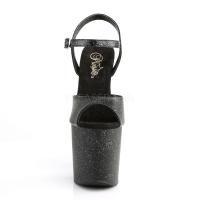 7 1/2"(19.1 cm) ヒール、3 1/2 インチ (8.9 cm) プラットフォーム アンクルス トラップ サンダル上に虹色のマルチ キラキラとプラットフォームを搭載(PF Ankle Strap Sandal w/Mini Glitter)
