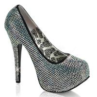 5 3/4"(14.6 cm) ヒール、1 3/4 インチ (4.5 cm) 隠されたプラットフォーム、ラインス トーン ワイド幅ポンプします。