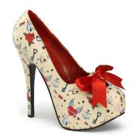 5 3/4"(14.6 cm) ヒール、1 3/4"(4.4 cm) プラットフォーム サテン蝶ネクタイが付いているポンプします。