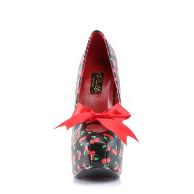 5 3/4"(14.6 cm) ヒール、1 3/4"(4.4 cm) プラットフォーム サテン蝶ネクタイが付いているポンプします。