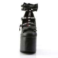 5 1/2 インチ (14 cm) ブロックのかかと 3」(7.6 cm) プラットフォーム ストラップ付き T ストラップ ポンプ搭載ダブル弓とスパイクのスタッド装飾(PF T- Strap Pump w/ Bows)