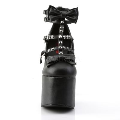 ◆ 5 1/2 インチ (14 cm) ブロックのかかと 3」(7.6 cm) プラットフォーム ストラップ付き T ストラップ ポンプ搭載ダブル弓とスパイクのスタッド装飾 ◆