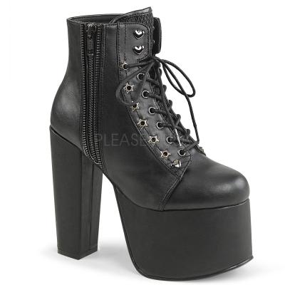 5 1/2 インチ (14 cm) ヒール、3 インチ (7.6 cm) 外側の金属のジッパーとスター ・ ハート鋲 PF 編み上げ足首ブート