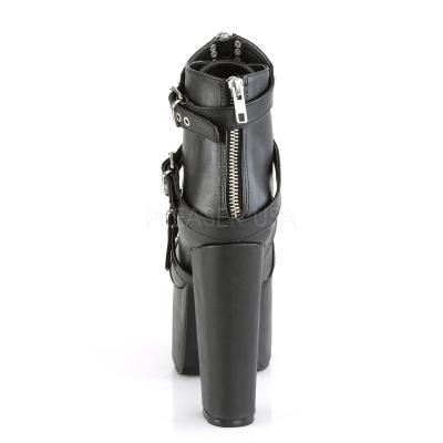 5 1/2 インチ (140 mm) かかと、3 インチ (76 mm) プラットフォーム編み上げ靴アンクル ブーティー特徴取り外し可能な棺形逆十字鋲ディテール付けフォント パネル ・観賞用スカル頭ジッパー、バック金属ジッパー閉鎖(PF Lace-Up Ankle Bootie, Back Zip)
