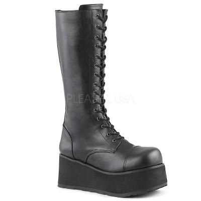 3 1/4 インチ (8.3 cm) プラットフォーム ゴス パンク 17 アイレット膝ブート完全内側ファスナー付け