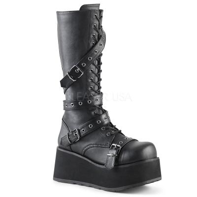 3 1/4 インチ (83 mm) プラットフォーム レースアップ ニーハイ包み込む完全ジッパー閉鎖中のグロメット ストラップ w/起動します。(PF Knee High Boot w/ Wrap Around Straps, Inside Zip)