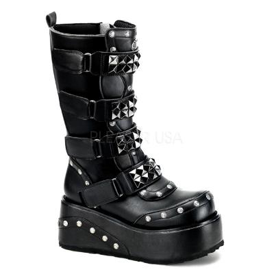 完全内部サイド ジッパー(*3/12"PF Goth Punk Blk PU Calf BT W 4 Staps & Pyramid Studs)