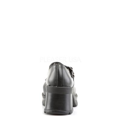 2 3/4 インチ (7 cm) ヒール ゴス 2 バックル ストラップ分厚いかかと靴、ないジッパー(Goth 2 Buckle Strap Chunky Heel Shoe)