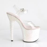 7 インチ (178 mm) かかと、3 1/4 インチ (83 mm) プラットフォーム アンクルス トラップ サンダル プラットフォーム底とユニコーンのかかとにホログラムのきらめきを搭載(PF Ankle Strap Sandal w/ Unicorn Heel)