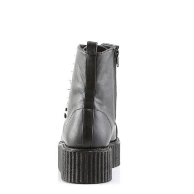 2 インチ (5.1 cm) プラットフォーム レースアップ フロント クリーパー足首の外側に、ジッパー閉鎖中 w/スパイクを起動(PF Lace-Up Creeper Ankle Boot w/Spikes Detail, Side Zip)