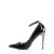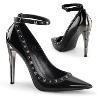 4 1/2 インチ (11.4 cm) クロム ライトニング ボルト ヒール アンクルス トラップは、魔性の女に全室金属スタッドをポンプします。(Chrome Lightning Bolt Heel Ankle Strap Pump)