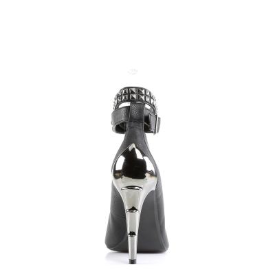 4 1/2 インチ (11.4 cm) クロム ライトニング ボルトかかとポンプ全室ラップアラウンド アンクルス トラップ金属スタッドの詳細と