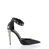 4 1/2 インチ (11.4 cm) クロム ライトニング ボルトかかとオルセー ポンプ全室ピラミッド金属スタッドの足首ストラップ、バック ジッパー(Chrome Lightning Bolt Heel D'Orsay Ankle Strap Pump)