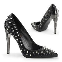 4 1/2 インチ (11.4 cm) ライトニング ボルトかかとポンプ ヴァンプにツートン カラーのスパイクのスタッドを搭載したクローム