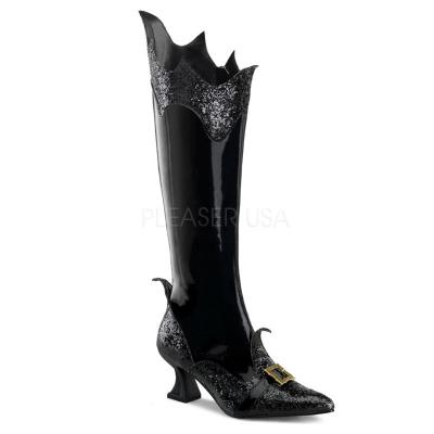 2 1/2 インチ (6.4 cm) ヒール先のとがったつま先魔女ブート カール ヴァンプ ・ バック カウンターのディテールでは、完全に内側にジッパーを搭載(Heel, Women's Pointy Toe Witch Boot)