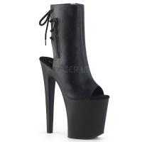 8 インチ (200 mm) かかと、4"(100 mm) プラットフォーム オープンつま先またはかかと隠しファスナー付きポケット、ジッパー閉鎖中完全 w/バック アンクル ブーツ レースアップ(PF Open Toe/Heel Ankle Boot, Side Zip)