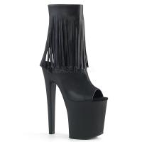 8 インチ (200 mm) かかと、4"(100 mm) プラットフォーム オープンつま先またはかかとの縁取られた足首ブート、ジッパー閉鎖中完全(PF Open Toe/Heel Fringed Ankle Boot, Side Zip)