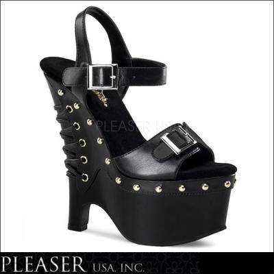 ウェッジサンダル/厚底サンダル/編み上げ&スタッズのダブルストラップサンダル(ヒール6 1/2インチ)【プリーザー/Pleaser】(BEAU-612 Double Ankle Strap Wedge Sandal)