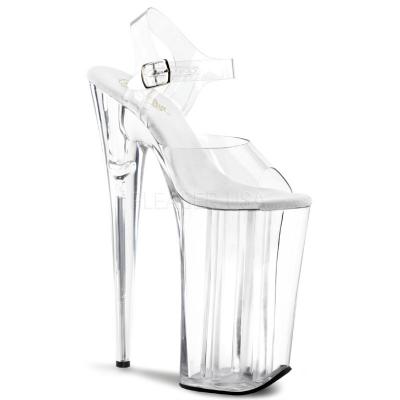 スーパー厚底サンダル/プラットホーム/超厚底のアンクルストラップクリアサンダル(ヒールの高さ約25センチ)【プリーザー/Pleaser】 10インチ(約25.4センチ)もある超ロングな厚底が激アツなクリアサンダル☆アンクルストラップ付きのタイプで脚にフィットしてくれるので歩きやすい!ロングドレスもスタイリッシュに決まっちゃうスーパーロング厚底サンダル★ ※ハイヒール商品につきまして※ こちらの商品は座ったり、横たわったりなどの際の専用となっております。ダンスなどでの使用・歩行時の際のシューズとなっておりません。怪我などにつきまして、一切責任を負いかねますので予めご了承くださいませ。