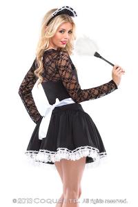 メイドコスチューム/仮装/コスプレ/メイド服/メイドコスプレ/清楚系花柄レースフレンチメイドコスチューム3点セット☆【COQUETTE★コケット】 ストレッチの効く上品レースとライクラ素材のコントラストが素敵な清楚系メイドエプロンワンピース☆透け感がセクシーな長袖にふんわりスカートがとってもキュート♪お揃いのヘッドピース付きの本格的コスチューム★ 【セット内容】 メイドワンピース エプロン ヘッドピース ※写真のミニはたきは含まれておりませんのでご了承ください。