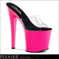 ブラックライト反射サンダル/ブラックライトに反応して光る厚底サンダル(ヒールの高さ約7 1/2インチ)【プリーザー/Pleaser】(TABOO-701UV Slide Featuring UV Reactive Neon Colored Bottom)