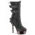 5 1/2 インチ (140mm) フィンガー ボーン ヒール、1 1/2 インチ (38mm) プラットフォーム モト ミッドカーフ ブーツ、コルセット スタイルのアウター レーシング ディテール、ダブル スケルトン ハンド バックル ストラップ、スパイク スタッド ディテール、ダブル ハンギング チェーン、ピューター クローム メッキ ボトム、インナー サイド ジップ クロージャー 5 1/2 インチ (140mm) フィンガー ボーン ヒール、1 1/2 インチ (38mm) プラット... \ |