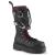2インチ(51mm)の積み重ねプラットフォーム14アイレットレースアップコンバット膝まで伸びるブーツ。調整可能なシールド、オーバーサイズのスカルOリング(スパイクスタッドとDリングのレース細部)、装飾的なDリングトップレース、ブーツのバットバックルストラップ、内側金属製ジップクローズ 2インチ(51mm)の積み重ねプラットフォーム14アイレットレースアップコン... \ |