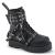 2インチ(51mm)の積み重ねたプラットフォーム8アイレットレースアップコンバットブーツ。ダブルグロメット上部バックルストラップ(吊り下げ式取り外し可能な背中ストラップ)、取り外し可能なパフィーハートボンデージチャーム、下部グロメットストラップのディテール、内側金属製ジップクローズ 2インチ(51mm)の積み重ねたプラットフォーム8アイレットレースアップコ... \ |