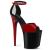 8""(200 mm) かかと、4""プラットフォーム下に赤と黒のストライプの w/(100 mm) プラットフォーム アンクルス トラップ サンダル 8""(200 mm) かかと、4""プラットフォーム下に赤と黒のスト... \ |